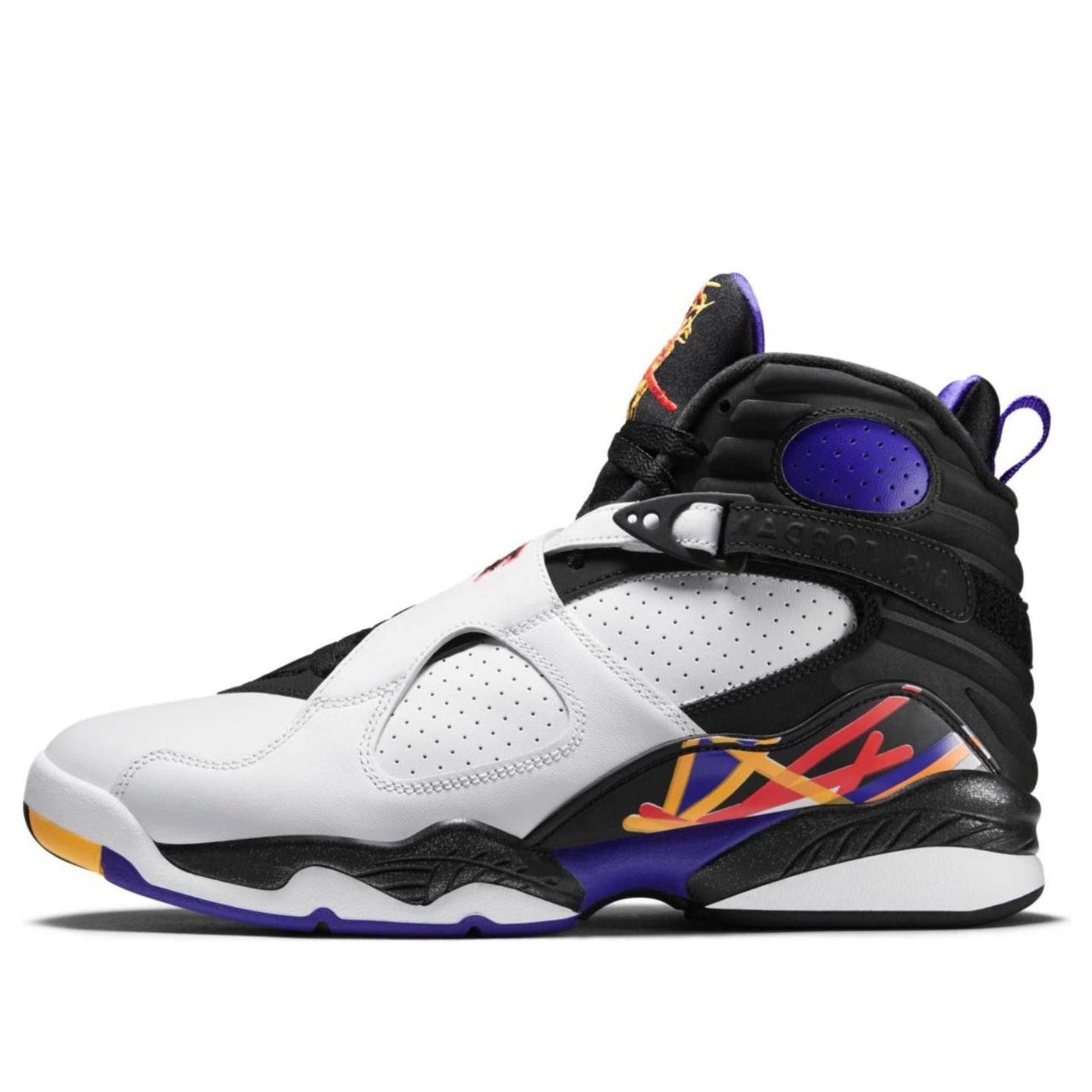 In terms of functionality, the Air Jordan 8 'Three-Peat' 305381-142 offers both style and comfort. The design provides a comfortable and supportive fit for everyday wear, making it suitable for various casual and lifestyle occasions.